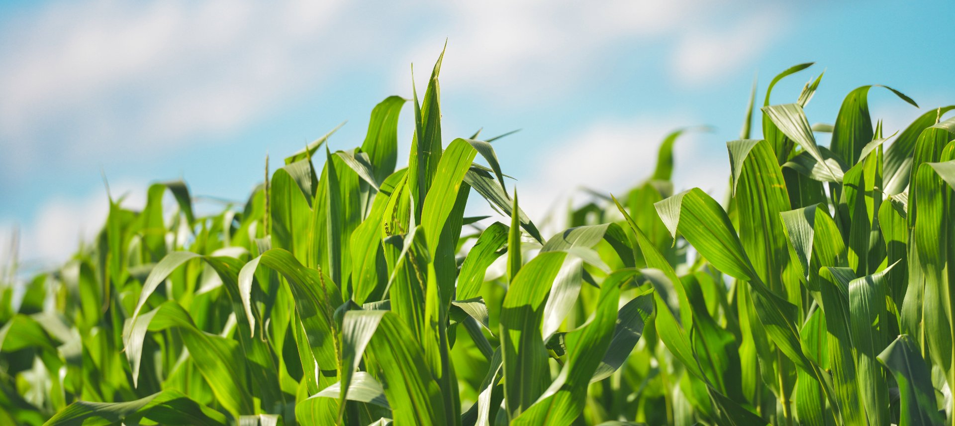 A vibrant field of healthy crops under a clear blue sky, showcasing lush green growth.